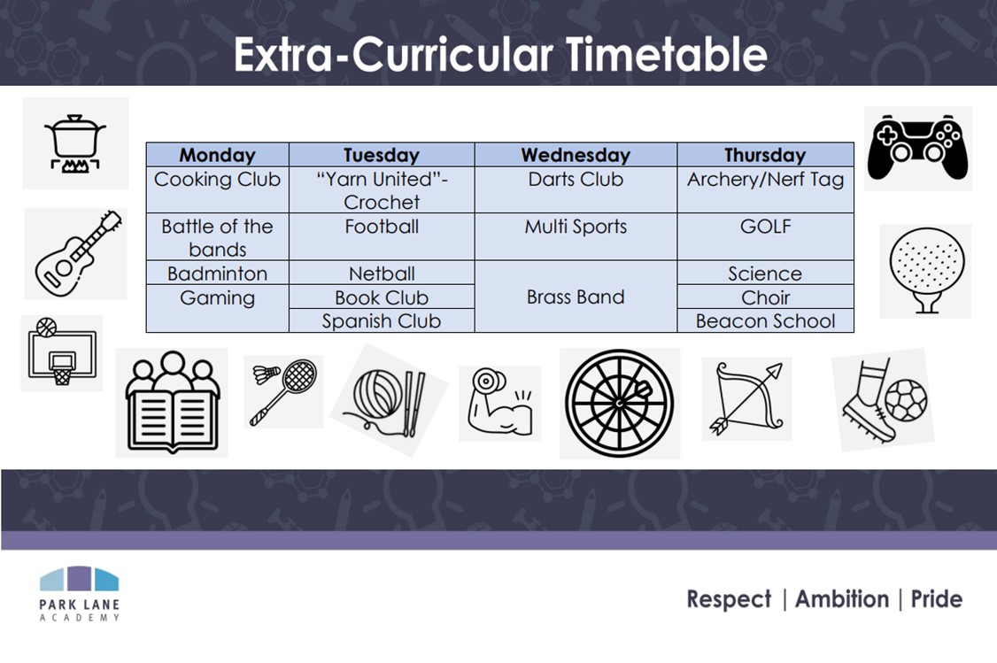 There is a vast range of opportunities available to our students outside of their regular timetable. These clubs and events are on offer after school. Every faculty area aims to provide curriculum enrichment so there is something for everyone!